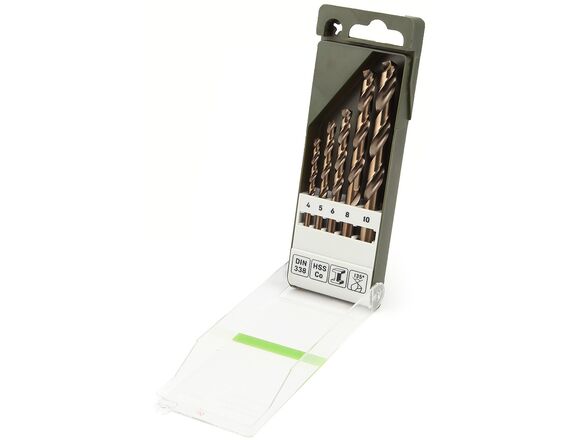 Набор свёрл по металлу Cobalt 5% 5 шт Дело Техники 211208 рассчитан на работу с материалами высокой твёрдости. Легирование кобальтом обеспечивает более высокую термостойкость, что значительно продлевает срок службы сверла.