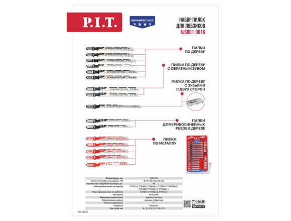 Набор пилок для лобзиков P.I.T. ADVANCE 16шт дерево/металл/фигурный рез, блистер