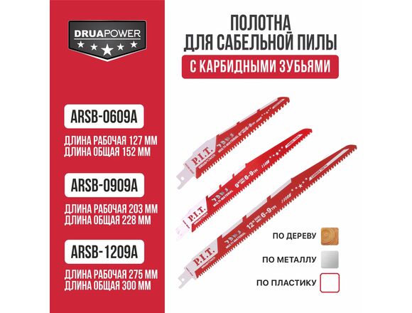 Универсальное пильное полотно для сабельных пил ARSB-0609A серии DRUA идеально подходит для работ по различным материалам - черным и цветным металлам, твердым породам дерева и пластику.