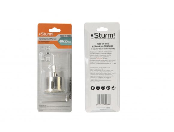Коронка алмазная Sturm 1055-09-4055 предназначена для работ по керамической плитке и стеклу.