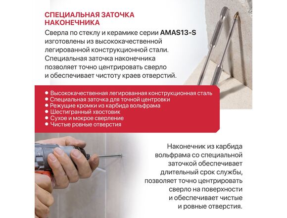 Сверло по стеклу и керамике P.I.T. ADVANCE Ø 5*70 мм, 2 реж. кромки, хвостовик 1/4"
