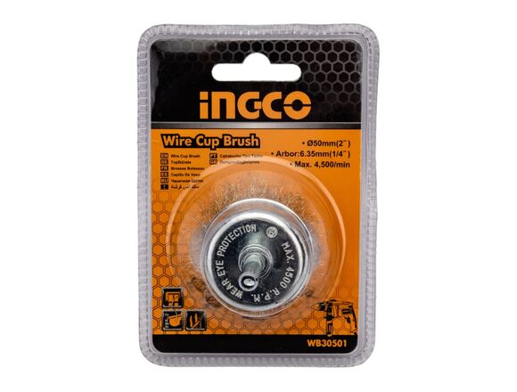 Щетка чашечная INGCO WB30501 используется для работы с УШМ. Служит для зачистки поверхностей покрытых лаком, краской. Подходит для устранения ржавчины на металлических изделиях.