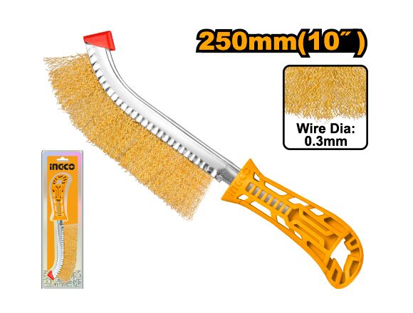 Щетка ручная по металлу INGCO латунь 250мм,с пластиковой ручкой БЛИСТЕР (15/60)