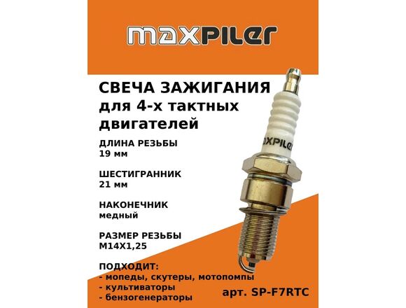 Свеча зажигания MaxPiler для 4-х тактн.двигат. (М14х1.25х19мм длинная)