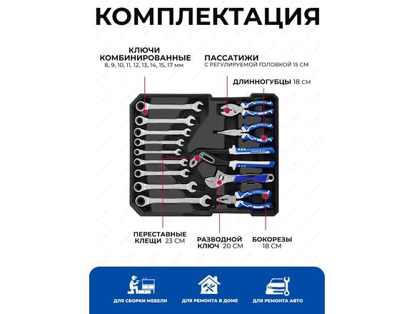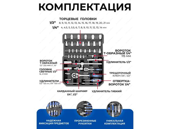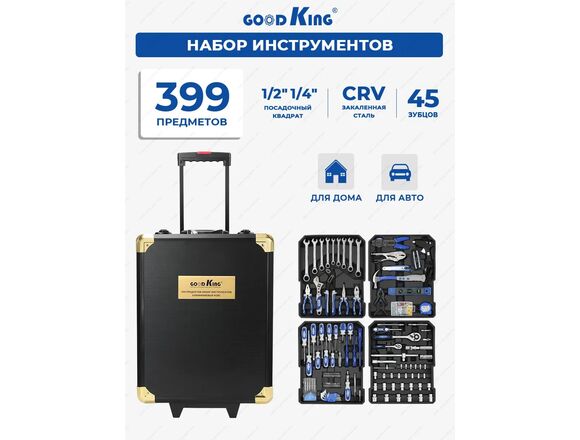 Набор головок и инструмента GOODKING 399пр 1/2 1/4 3/8 +голов/биты/ключи/шги/молот/отвер/нож/ур(1/1)