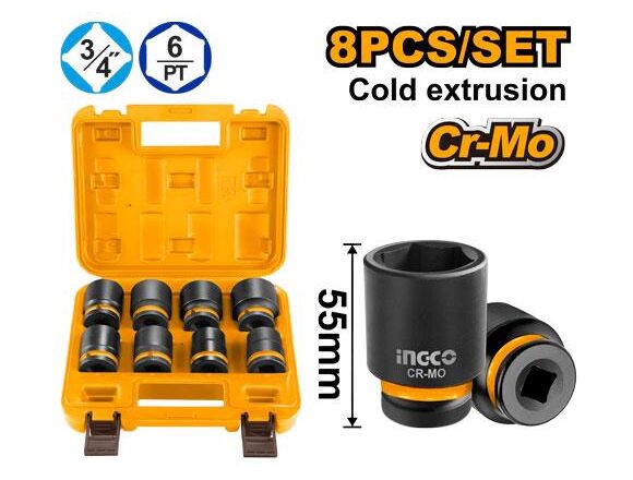 Набор головок ударных INGCO 3/4" 26/27/29/30/32/35/36/38mm 8шт ( 1/4)