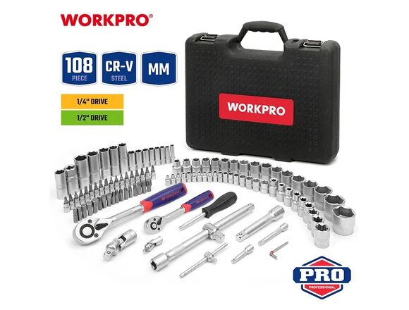 Набор головок WORKPRO 108пр 1/4 1/2 6-32мм Е 4-24(1/1)