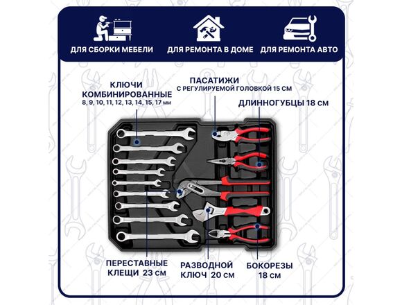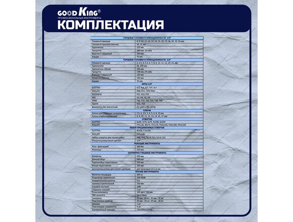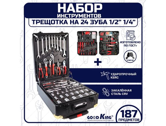 Набор головок и инструмента GOODKING 187пр 1/2 1/4 +голов/биты/ключи/шги/молот/отвер/уров/нож(1/1)