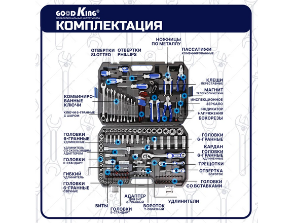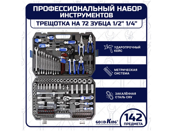 Набор головок и инструмента GOODKING 142пр 1/2 1/4 +голов/биты/ключи/шги/шестигр/отвер