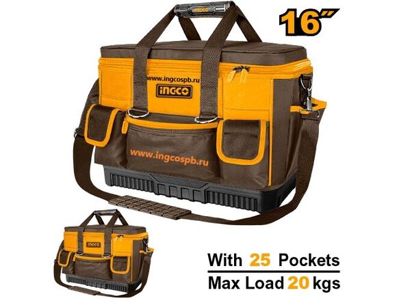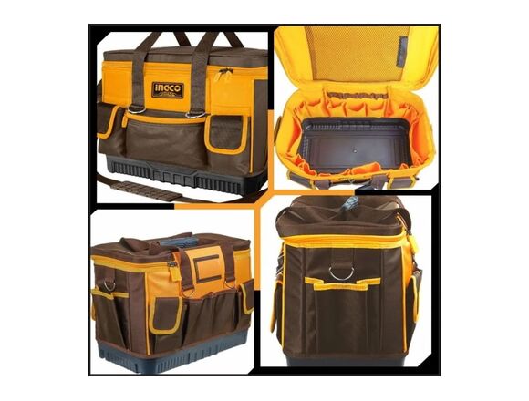 Сумка-органайзер для инструментов INGCO HTBG10 INDUSTRIAL предназначена для удобного размещения и переноски инструментов и принадлежностей, имеет жесткую конструкцию, откидную крышку на молнии.