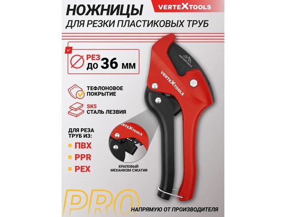 Ножницы для ПВХ труб VERTEXTOOLS PRO 36мм,с храповым механизмом.