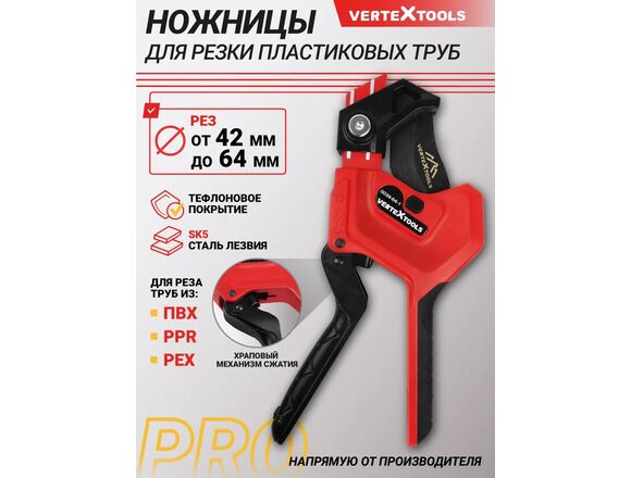 Ножницы для ПВХ труб VERTEXTOOLS PRO 42-64мм,регулируемый с храповым механизмом.