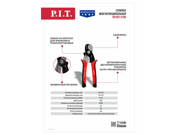 Сьемник изоляции (стриппер) P.I.T. cерия ADVANCE 180мм, зачистка проводов, кабелерез (6/36)
