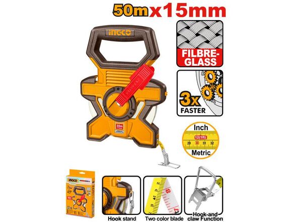 Лента мерная геодезическая INGCO 50м*15мм фиберглас (5/20)