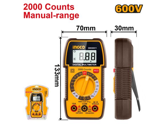 Мультиметр цифровой INGCO индикация: TRUR RMS 2000 отсчетов (4/40)