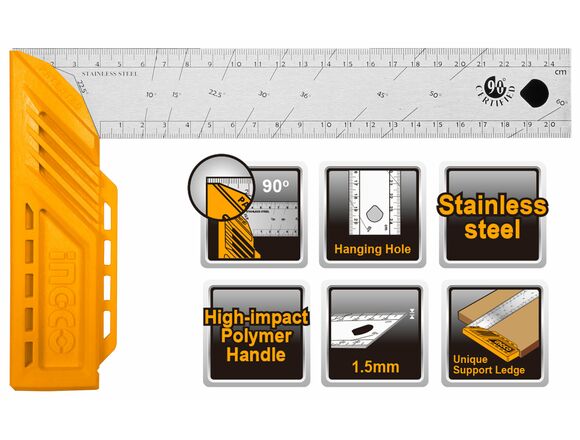 Угольник INGCO INDUSTRIAL 300мм НЕРЖ + ударопрочный полимер (8/48)