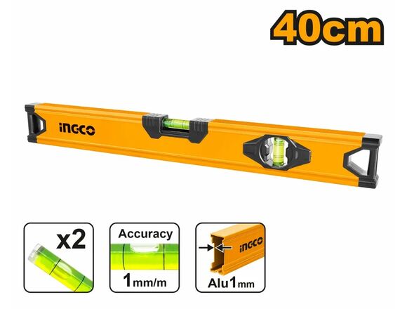 Уровень INGCO INDUSTRIAL 2 глазка 400мм, 1мм/м АНОДИРОВАННЫЙ (10/40)
