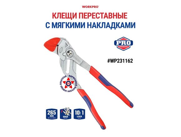 Клещи переставные WORKPRO 265мм CR-V (с кнопкой + накладки WP231162) (1/6)