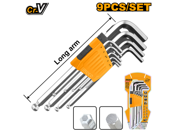 Набор шестигранников HEX INGCO INDUSTRIAL 9шт, средние, С ШАРОМ (6/48)