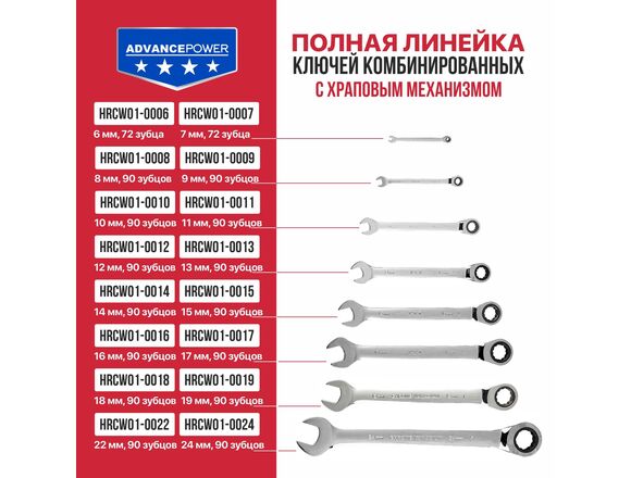 Ключ комбинированный трещоточный P.I.T. ADVANCE 7мм, 40CrV, 72 з