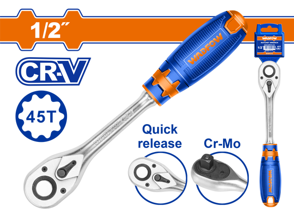 Ключ трещотка WADFOW 1/2" 260мм 45зуб (1/20)