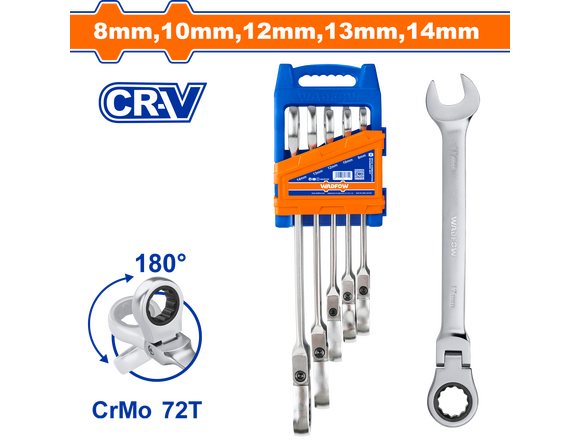 Набор ключей комбинированных с трещоткой шарнирных WADFOW 5 шт 8-14мм (1/24)