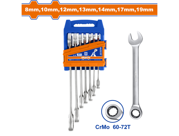 Набор ключей комбинированных с трещоткой WADFOW 7шт 8-19мм(1/18)