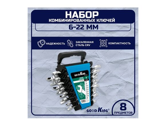 Набор ключей рожковых GOODKING 8 шт (6-22мм) с холдером