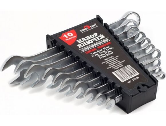 Набор ключей СЕРВИС КЛЮЧ 10 предметов 7, 8, 10, 12, 13, 14, 15, 17, 19, 22 мм, холодный штамп CR-V 70025 позволяет эффективно работать с шестигранным крепежом.