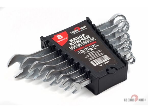Набор ключей 8 предметов СЕРВИС КЛЮЧ 8.9.10.12.13.14.17.19, холодный штамп CR-V PROFFI 70020 представляет собой комплект инструмента, при помощи которого можно без труда работать с типовыми размерами шестигранного крепежа.