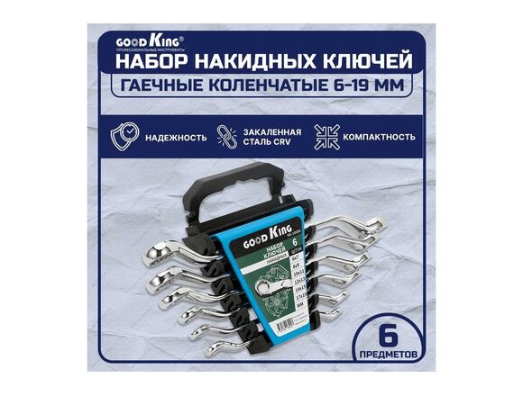 Набор ключей гнутонакидных GOODKING 6 шт (6-19мм) с холдером (1/20)