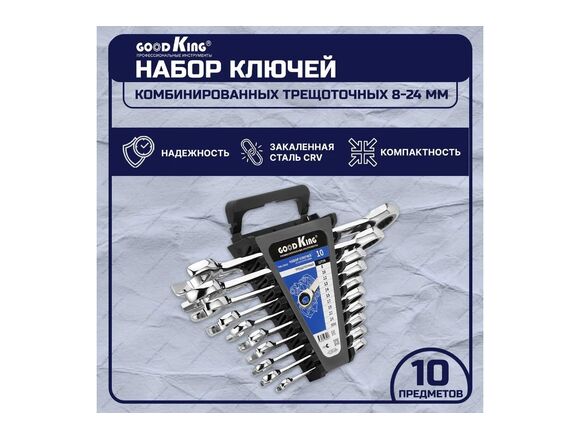 Набор ключей комбинированных трещоточных GOODKING 10 шт (8-24мм) с холдером