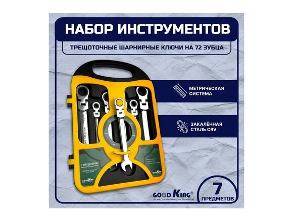 Набор ключей комбинированных трещоточных шарнирных GOODKING 7 шт (8-19мм) КЕЙС