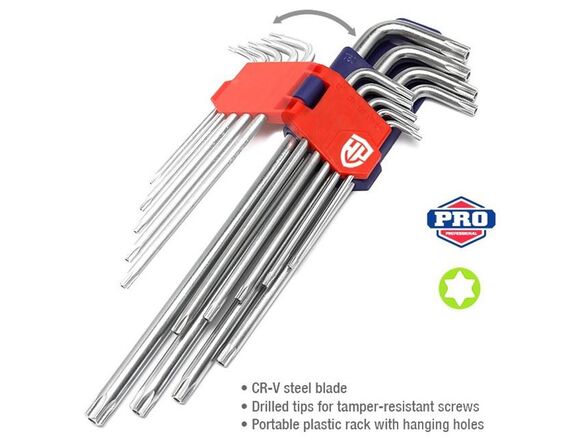 Набор шестигранников TORX WORKPRO с отверстием 9шт удлиненных (1/36)