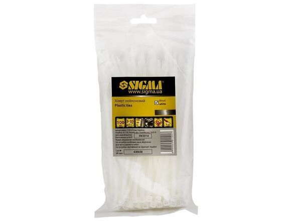 Хомут нейлоновый белый 100шт. SIGMA 2,5 х 200мм (150/300)