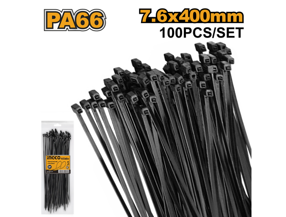 Хомуты нейлоновые для стяжки INGCO 400*7,6мм ЧЕРНЫЕ (100шт/уп) (10/50)
