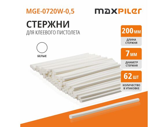 Стержни клеевые MAXPILER 7мм*200мм,уп. 500 г/ 62шт,белые (1/20)