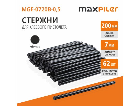 Стержни клеевые MAXPILER 7мм*200мм,уп. 500 г/ 62шт, черные (1/20)
