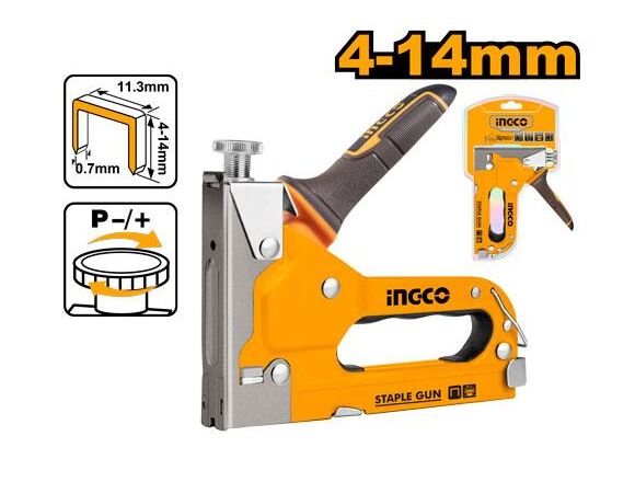 Степлер механический INGCO HSG1404 INDUSTRIAL имеет усиленную конструкцию, применяется для крепления изоляционного материала, панелей и облицовки к различным поверхностям (дерево, ДВП, ДСП, гипсокартон, пластик).