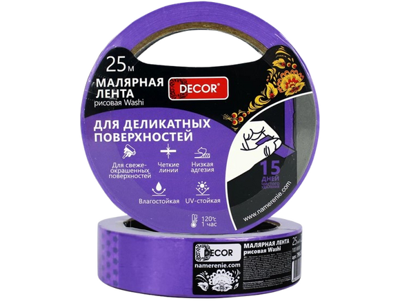 Лента малярная фиолетовая DЕCOR 48мм*50м, для деликатных работ (1/54)