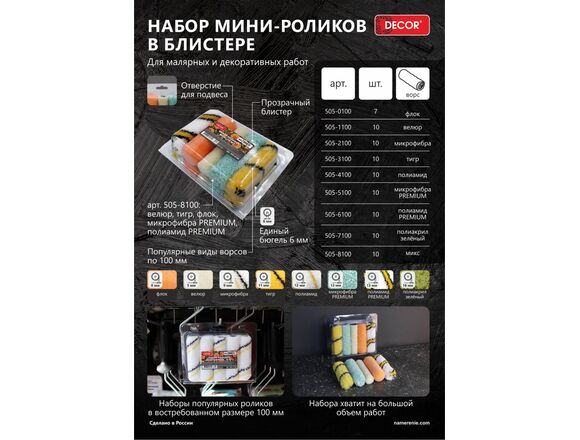 Набор роликов DECOR микс 100 мм, 10 шт в асортименте (16шт/32шт)