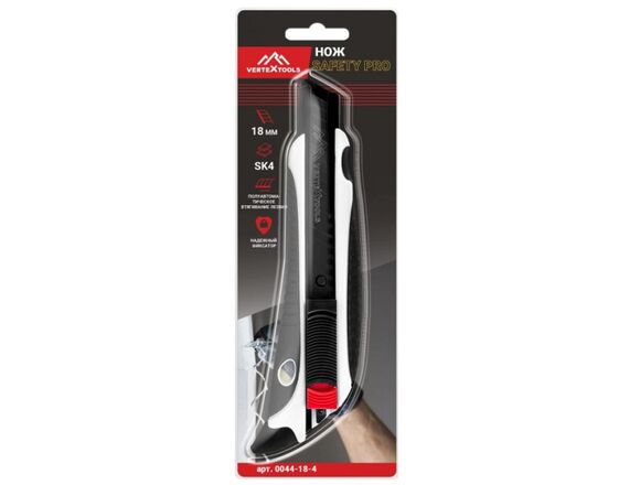 Нож МАЛЯРНЫЙ VERTEXTOOLS PROFI SAFETY 18 мм, ЛЕЗВИЕ SK4