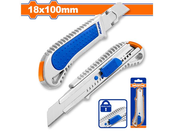 Нож с сегментным лезвием WADFOW 18мм, автозамок, УСИЛЕННЫЙ, МЕТАЛЛ / ручка 2К, БЛИСТЕР (1/144)