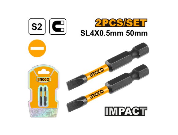 Бита ударная INGCO INDUSTRIAL SL4* 50мм, IMPACT, 2шт блистер (50/400)