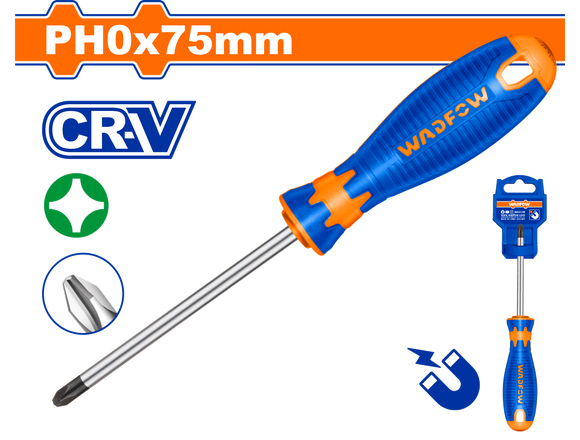 Отвертка крестовая WADFOW PH0*75мм (1/240)
