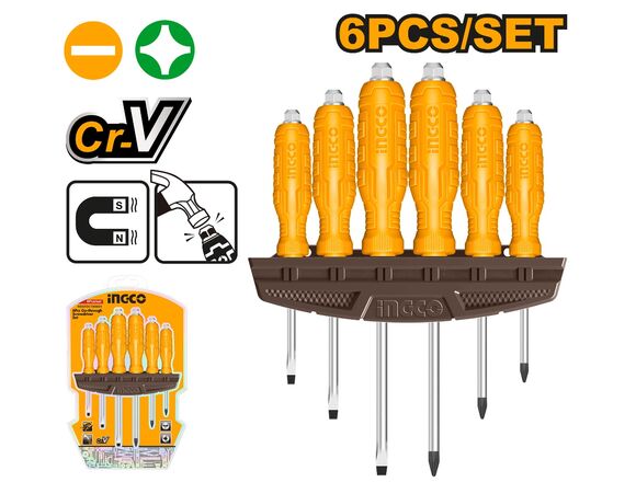 Набор ударных отверток INGCO 6шт, С ДЕРЖАТЕЛЕМ (1/20)