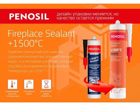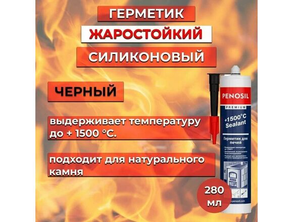 Герметик ОГНЕУПОРНЫЙ PENOSIL 280мл ЧЕРНЫЙ (до+1500) Fireplace Sealant для каминов и печей(1/12/1152)