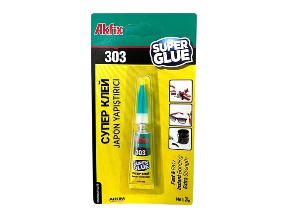 Супер клей Akfix 303 3 гр GA0031 – быстросохнущий клей низкой вязкости на основе цианакрилата. Незаменим там, где требуется очень быстрое высыхание или точечное применение.