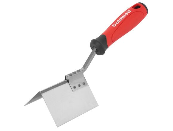 Угловой мастерок Goldblatt внешний угол, 89x60 мм G05529 используется для отделки внешних углов. Специальная форма полотна обеспечивает удобное выравнивание углов. Лезвие выполнено из закаленной нержавеющей стали, благодаря чему отличается прочностью и долговечностью. Мягкая ручка Soft grip обеспечивает комфортную эксплуатацию.