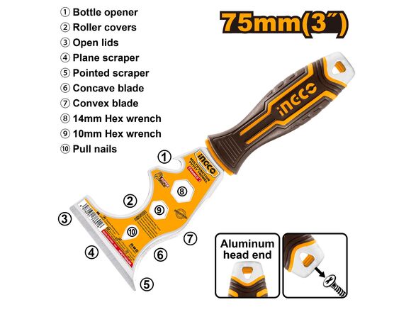 Многофункциональный шпатель INGCO 60 мм, нержавеющая сталь HPUT18060M представляет собой отделочный инструмент, который подходит для нанесения и снятия шпаклёвочного слоя, удаления излишек краски с шубки малярного валика.